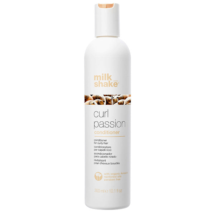 milk_shake® curl passion conditioner is paraben free conditioner for curly hair. It is ideal for all hair types to give softness and manageability without weighing hair down. Makes curls bouncy, flexible and long-lasting. Contains organic pracaxi and babassu oils, milk proteins, fruit extracts, Integrity 41® and quinoa proteins.