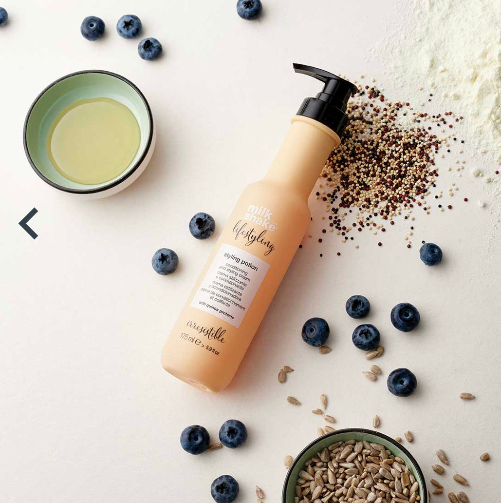 milk_shake lifestyling styling potion is a conditioning and styling cream that gives light support and an immediate conditioning effect to all hair types. It is a versatile and unique product that smoothens the cuticle of the hair while giving natural body.